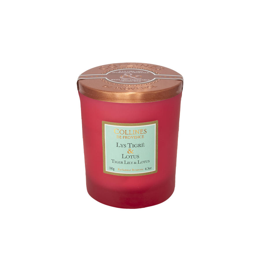 Découvrez notre bougie parfumée Lys Tigré & Lotus aux notes fleuries et aquatiques, fabriquée à la main dans nos ateliers en Haute-Provence