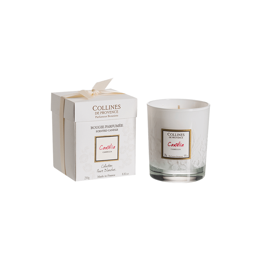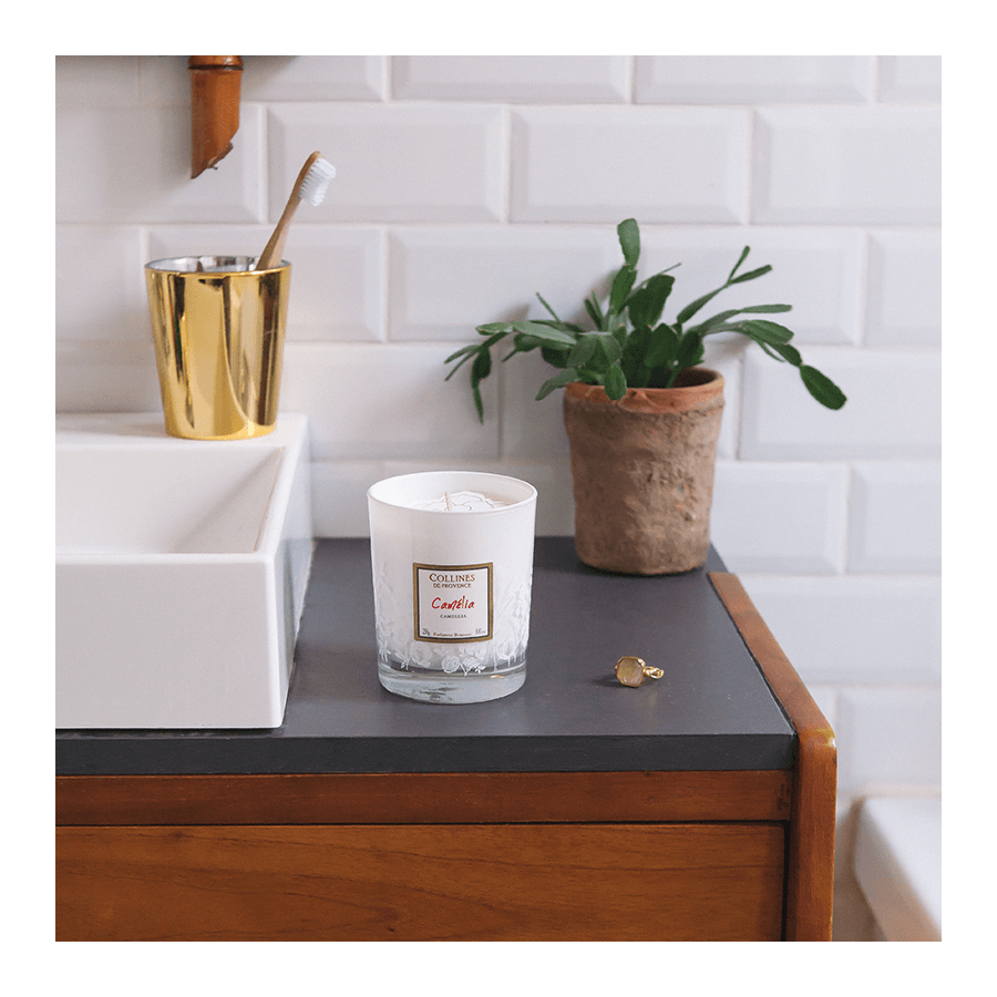Créez une ambiance chaleureuse et parfumée en allumant la bougie à la cire végétale Camélia.