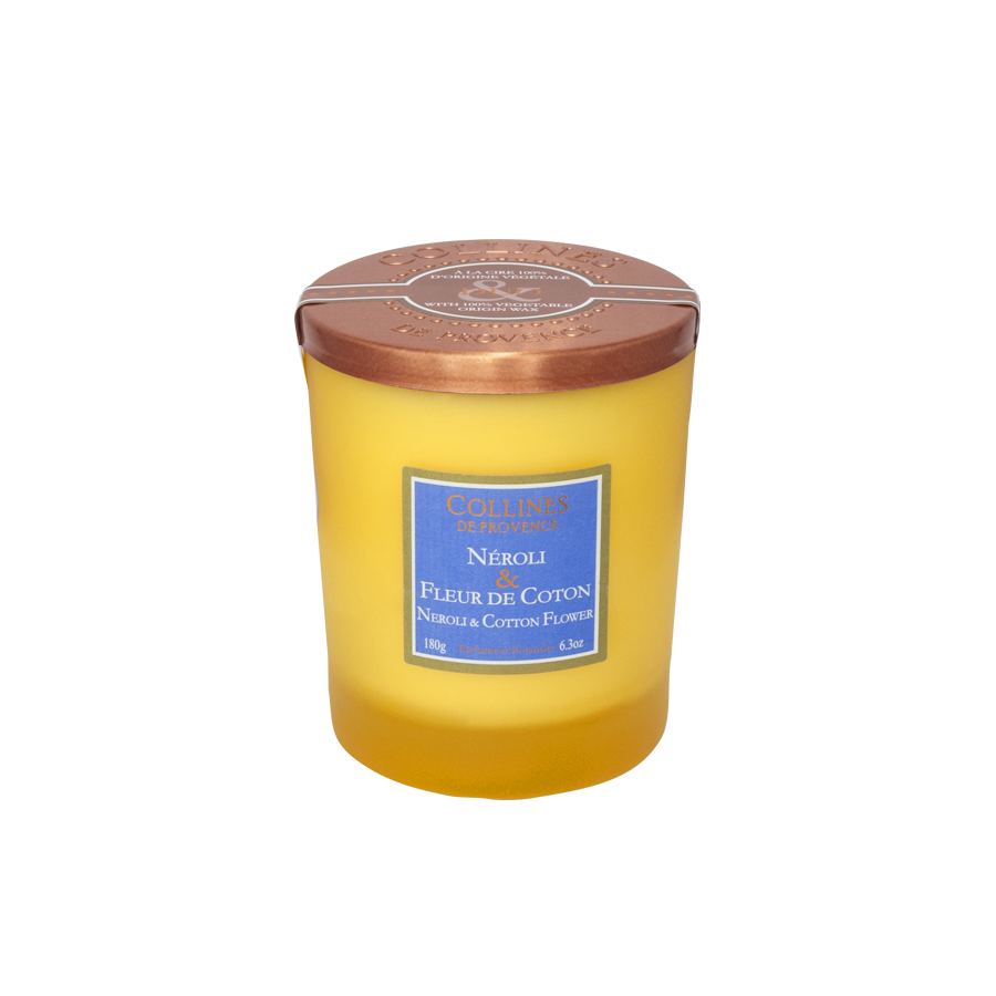 Découvrez notre bougie parfumée Néroli & Fleur de Coton aux notes fleuries et poudrées, coulée à la main dans nos ateliers en Haute-Provence.