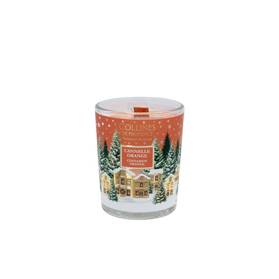 Formulée par nos parfumeurs Grassois, les notes d’agrumes et d’épices de la bougie Cannelle Orange vous feront voyager en méditerranée orientale ! Une senteur fruitée et intense. Coulée à la main et dotée d’une mèche bois qui crépite pour évoquer le doux chant de l’âtre, elle se pare d’un écrin féérique : la douce lumière de Noël diffuse ses rayons magiques à travers les fenêtres du village provençal… Un véritable conte de Noël !