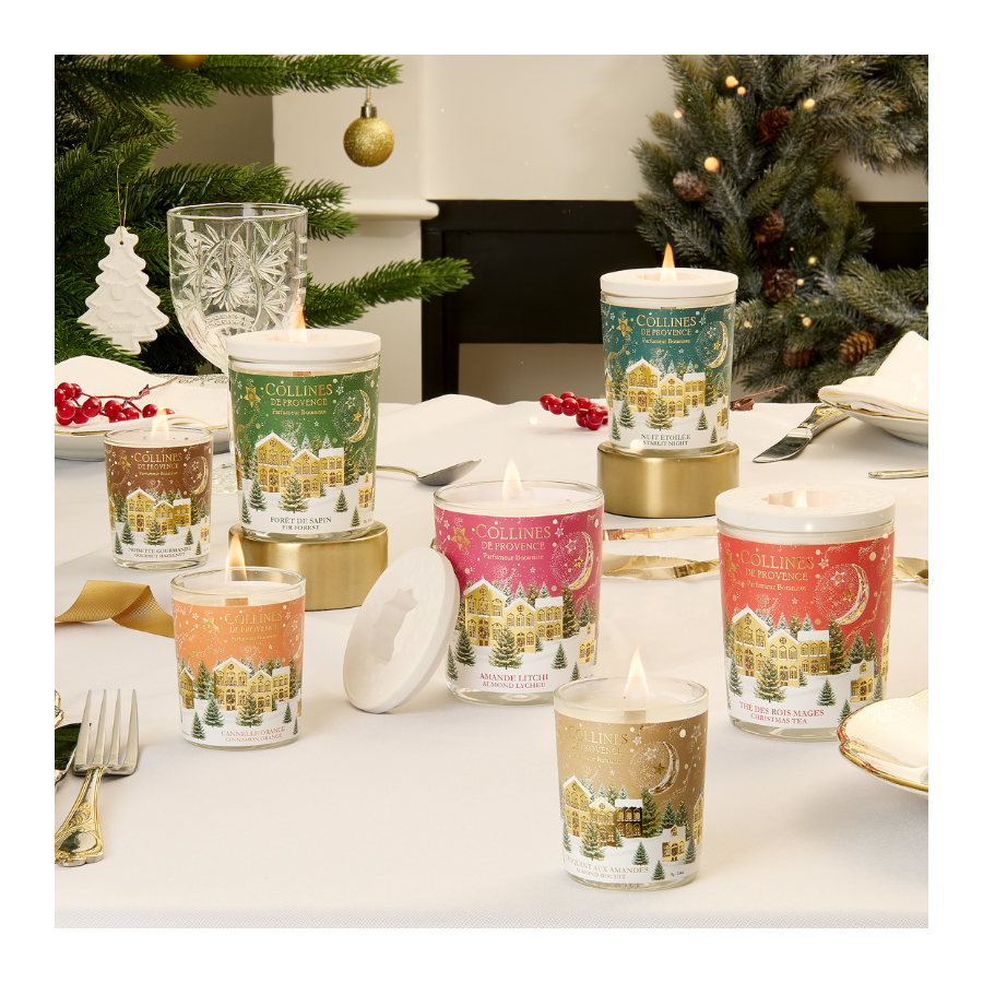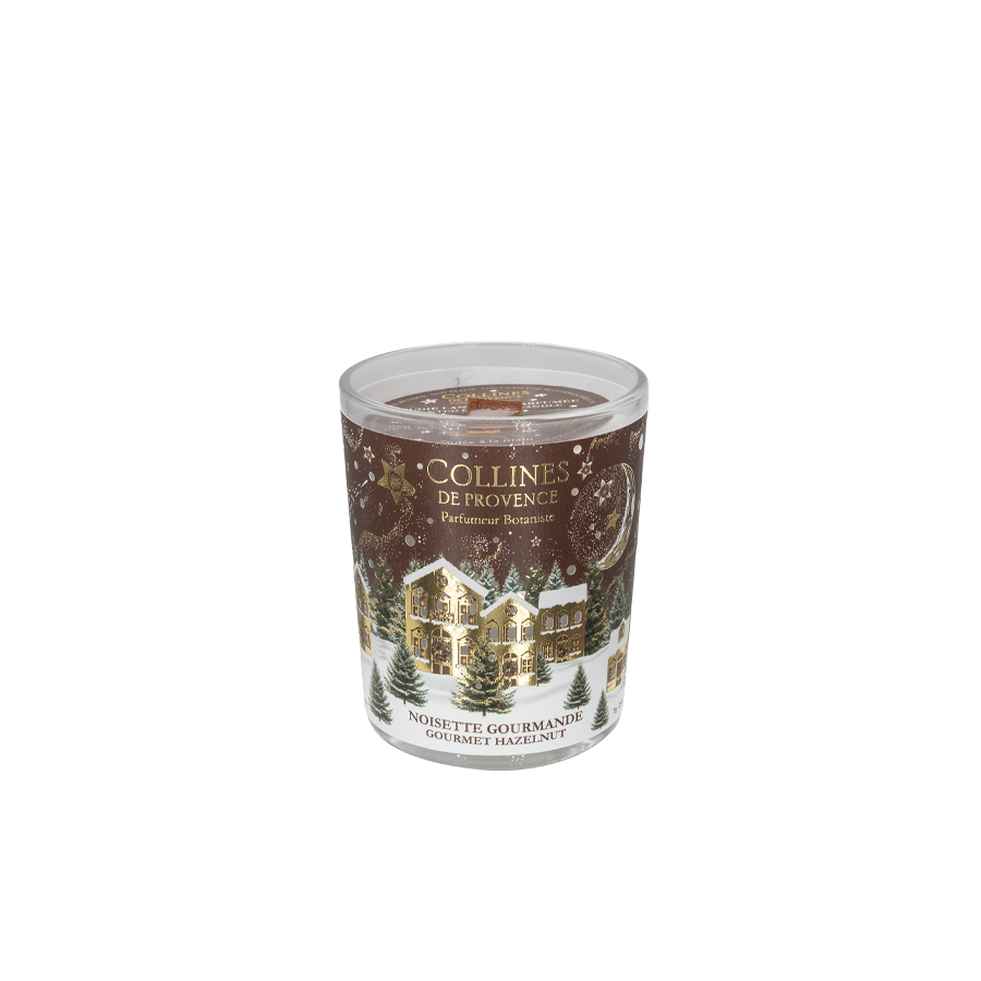 Découvrez la nouvelle bougie parfumée Noël 75g Noisette Gourmande fabriquée dans nos ateliers en Haute Provence.
