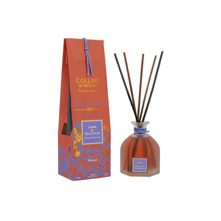 Succombez à la senteur orientale du bouquet parfumé Ambre & Héliotrope. Confectionné dans nos ateliers en Provence, ce bouquet parfumé au jus coloré décorera parfaitement votre intérieur tout en le parfumant.