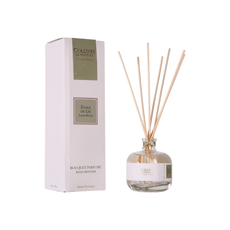 Découvrez la fragrance fleurie et fraîche du bouquet parfumé Étole de Lin Collines de Provence. Le bouquet parfumé made in France est confectionné à la main dans notre manufacture. Mariage de Géranium, Rose, Violette et Lavande, laissez-vous enivrer par ce doux parfum.