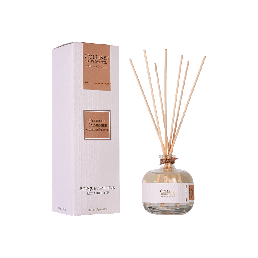 Découvrez le parfum fleuri et poudré du bouquet parfumé Fleur de Cachemire Collines de Provence. Confectionné dans nos ateliers et cousu à la main, il habillera votre intérieur pour une pause réconfortante. Une tendre fragrance où s’entremêlent Violette, Iris et Rose.