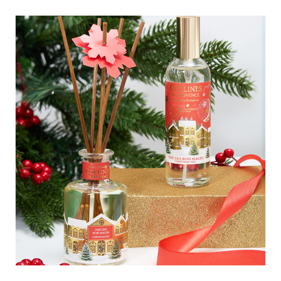 Découvrez le parfum envoûtant du Thé des Rois Mages, une senteur douce et épicée parfaite pour les nuits d'hiver. Présenté dans un étui cadeau décoré, ce bouquet parfumé prêt à offrir est une invitation au voyage olfactif, entre mystère et tradition, dans l’esprit des fêtes de Noël.