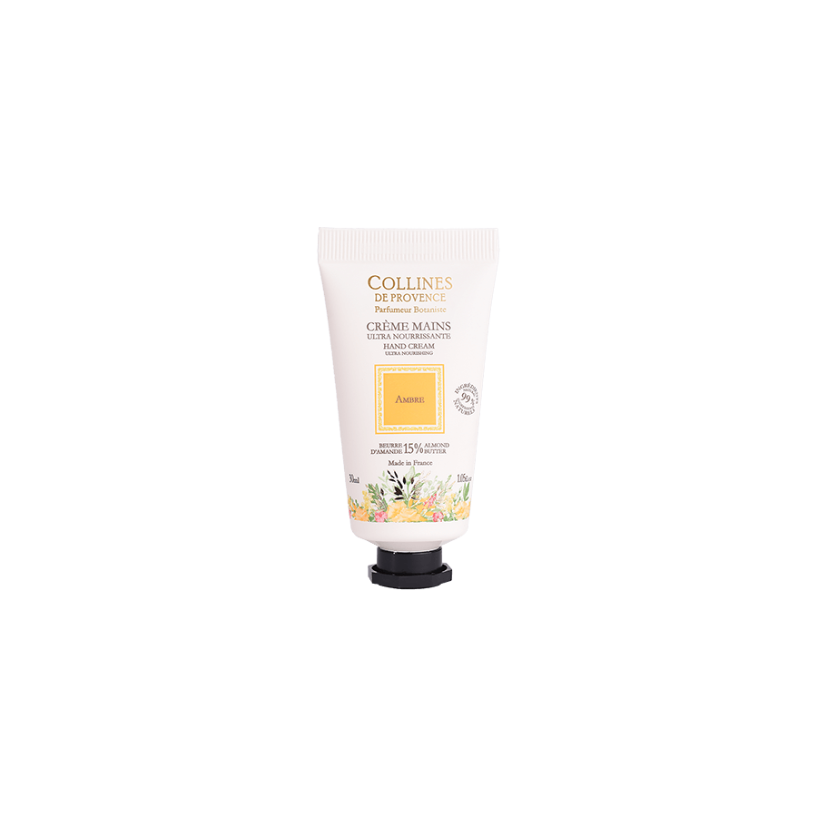 Enrichie en beurre d’amande de Provence (15%), la crème mains Ambre Collines de Provence, à la texture onctueuse et fondante, associe les vertus adoucissantes, réparatrices et nourrissantes du beurre d’amande douce.