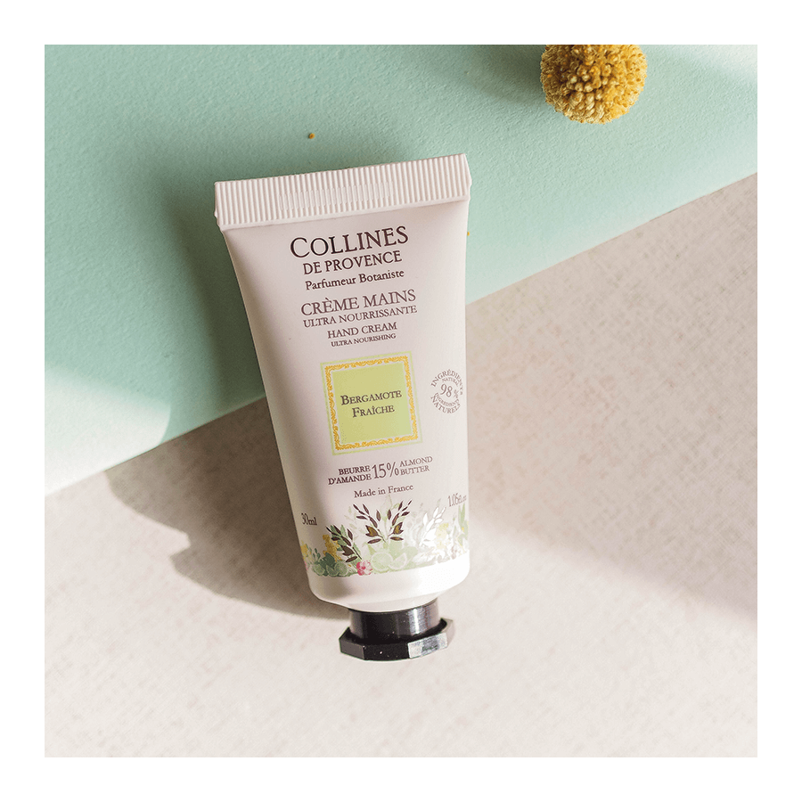 Enrichie en beurre d’amande de Provence (15%), la crème mains Bergamote Fraîche Collines de Provence, à la texture onctueuse et fondante, associe les vertus adoucissantes, réparatrices et nourrissantes du beurre d’amande douce.