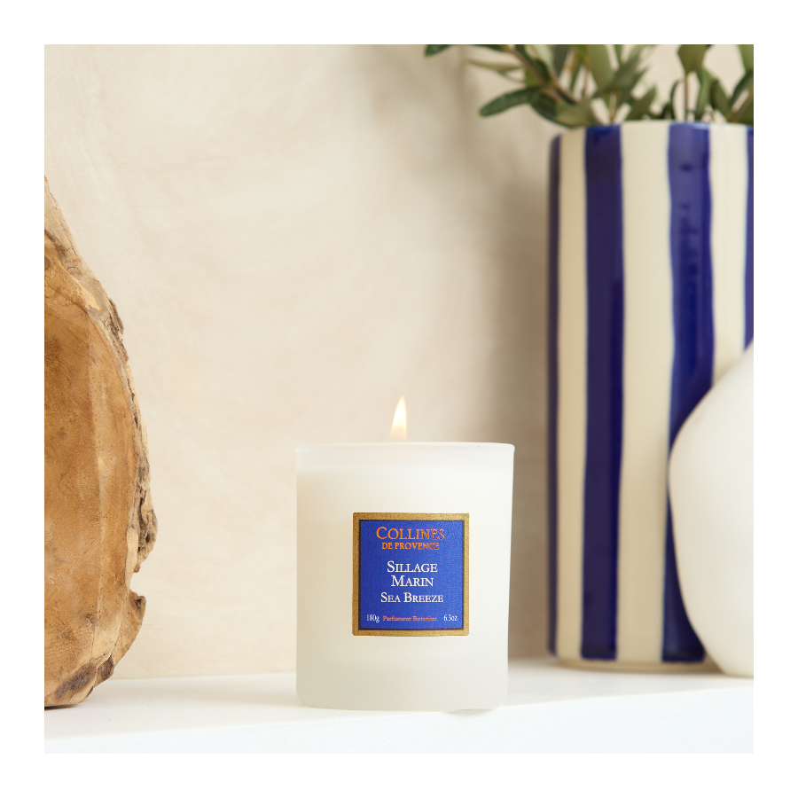 Entdecken Sie unsere Duftkerze Meeresbrise mit maritimen und aromatischen Noten, handgefertigt in unseren Werkstätten in der Haute-Provence.