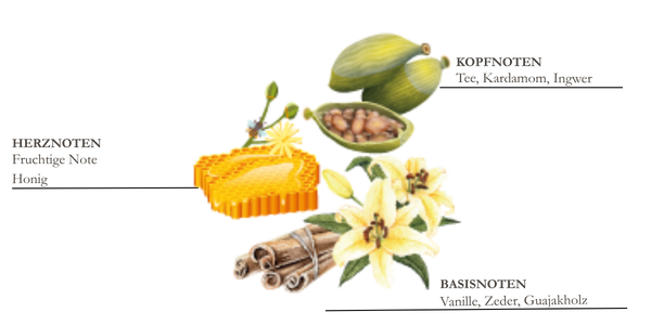 Die Duftkerze Weisenachtstee gehört zur olfaktorischen Familie der fruchtigen und bernsteinartigen Düfte :