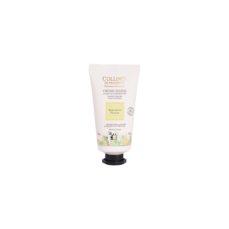 Die mit Mandelbutter aus der Provence (15 %) angereicherte Handcreme Frische Bergamotte von Collines de Provence zeichnet sich durch ihre cremige, zartschmelzende Textur aus und verfügt über die beruhigenden, reparierenden und nährenden Eigenschaften der Süßmandelbutter.