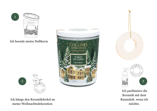 Die 360 g Kerze Forêt de Sapin, mit ihren holzigen Noten, versetzt Sie mitten in einen Nadelwald. Sie wurde von unseren Parfumeuren in Grasse, der Weltmetropole der Parfümerie, entwickelt.