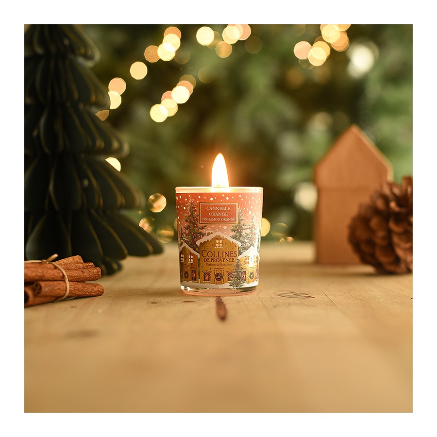 Die Kerze ist handgegossen und hat einen Holzdocht, der knistert, um an den sanften Gesang des Kaminfeuers zu erinnern. Sie ist mit einem märchenhaften Rahmen versehen: Das sanfte Licht der Weihnacht verbreitet seine magischen Strahlen durch die Fenster des provenzalischen Dorfes...