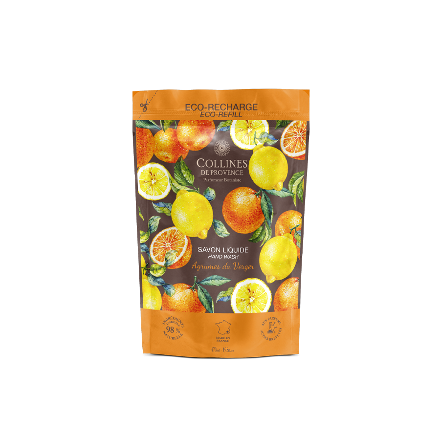 L'Eco-Recharge Savon Liquide Agrumes du Verger appartient à la famille olfactive Hespéridé et Florale :