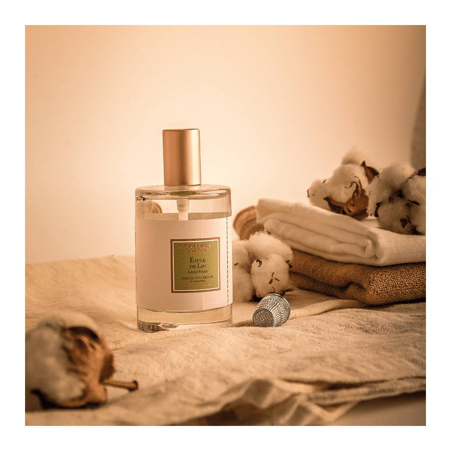 Le parfum d’intérieur Étole de Lin est le garant d’une harmonie entre plantes aromatiques et roses fraiches. Votre intérieur sera imprégné d’une atmosphère fraîche et fleurie, comme si vous vous promeniez au beau milieu d’un champ de délicates petites fleurs bleues.