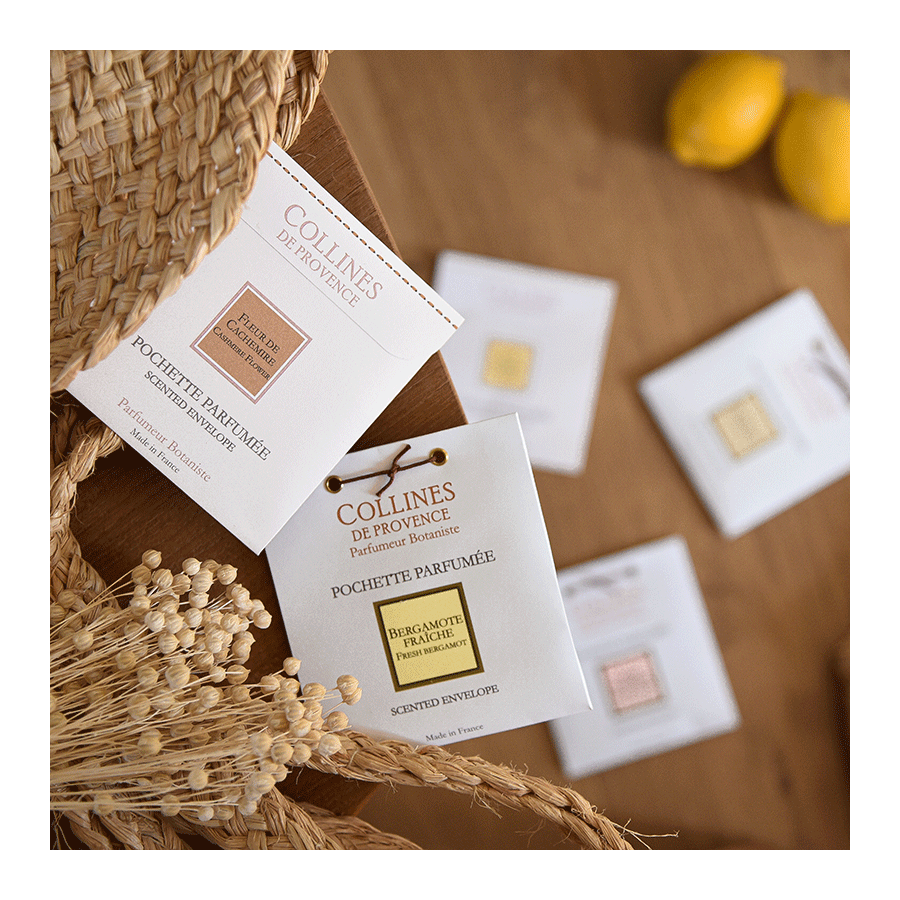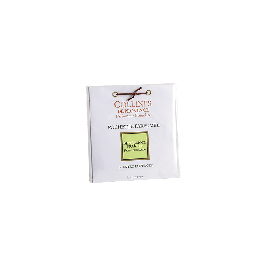 Découvrez la senteur pétillante et rafraîchissante de la pochette parfumée Bergamote Fraîche, fabriquée à la main dans notre manufacture au cœur des collines, en Provence. Son parfum aux notes fraîches et citronnées parfumera délicatement vos tissus, votre linge et vos armoires.