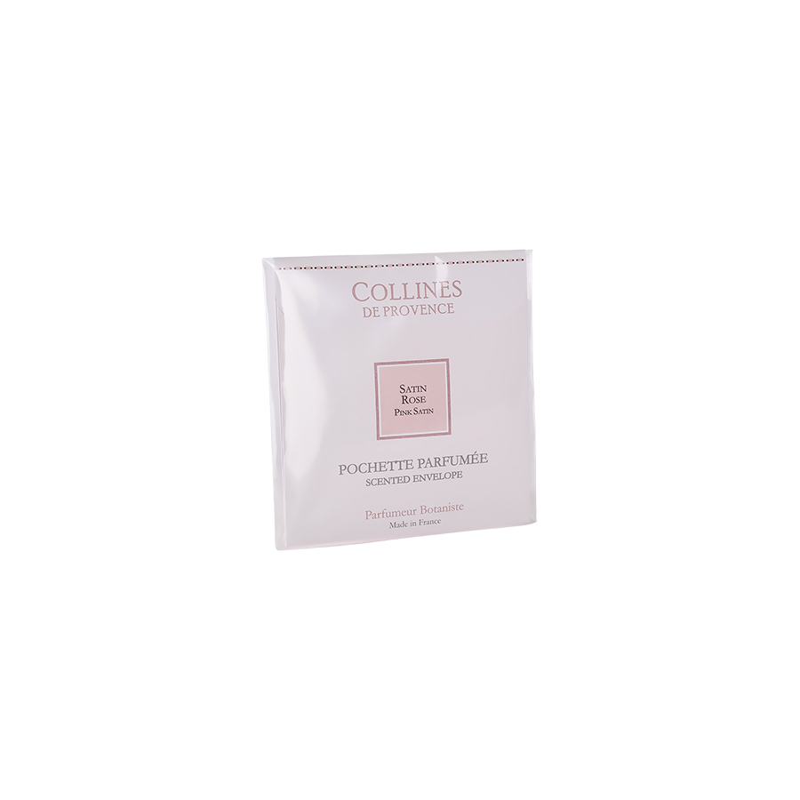 Découvrez la parfum floral et poudré de la pochette parfumée Satin Rose, confectionnée au cœur des Alpes de Haute-Provence dans le village de Mane. Sa fragrance aux notes sucrées et poudrées parfumera agréablement votre linge, vos armoires, tiroirs et sacs à main.