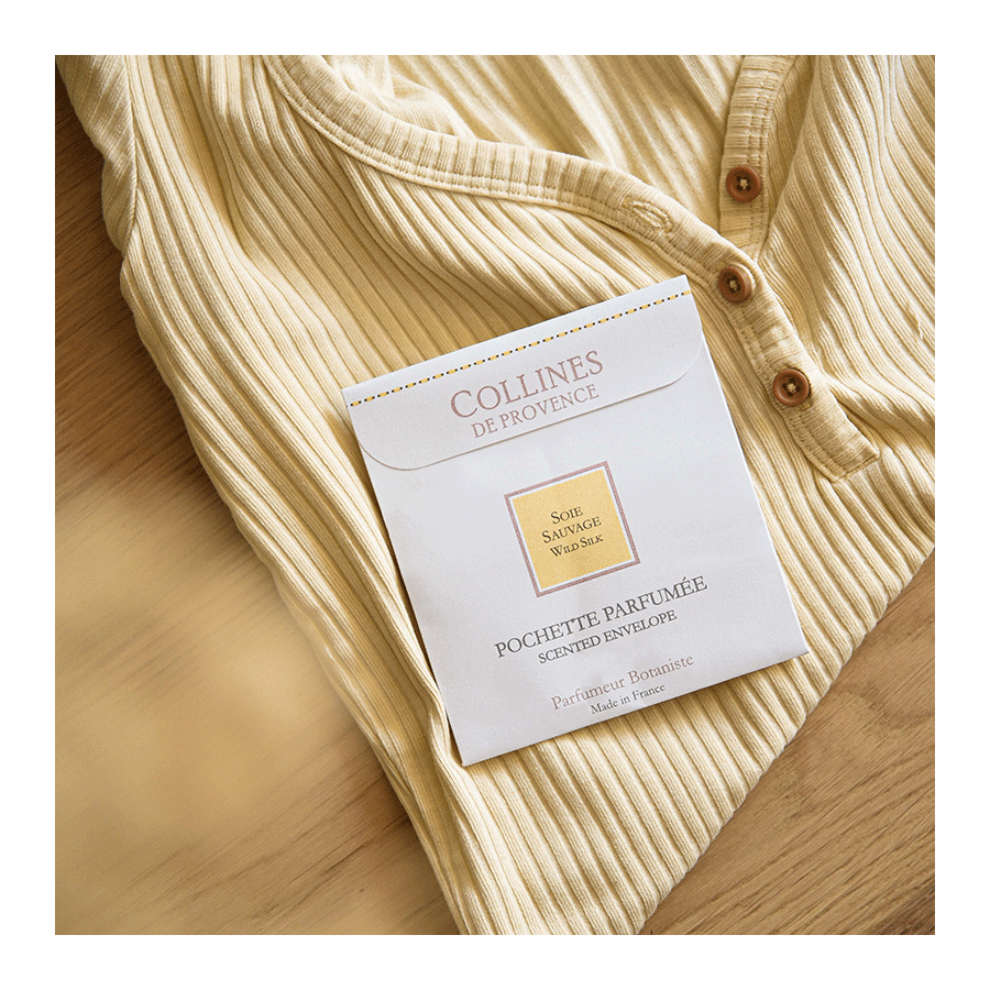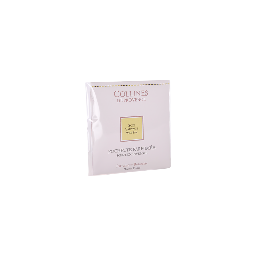 Découvrez la parfum floral et musqué de la pochette parfumée Soie Sauvage, confectionnée au cœur des Alpes de Haute-Provence dans le village de Mane. Sa fragrance aux notes vanillées et florales parfumera agréablement votre linge, vos armoires, tiroirs et sacs à main.