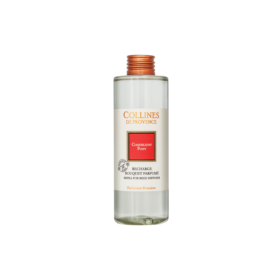Découvrez notre recharge pour bouquet parfumé Coquelicot aux notes fleuries, fabriquée à la main dans nos ateliers en Haute-Provence.