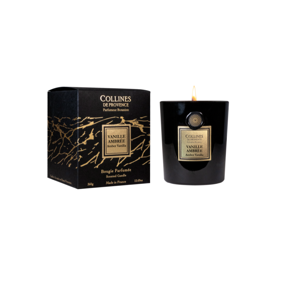 Immerse yourself in a warm atmosphere with our Amber Vanilla scented candle. A comforting fragrance, hand-poured with care in our Haute-Provence workshops.
