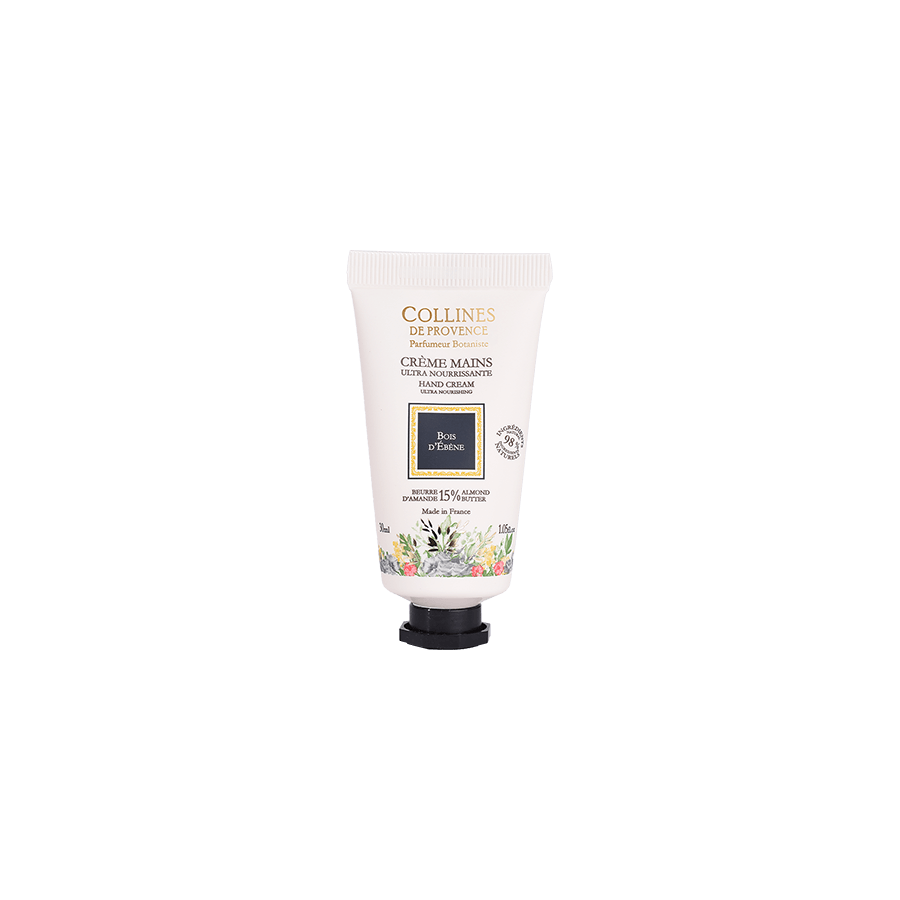 Enriched with almond butter from Provence (15%), hand cream Ebony wood Collines de Provence , with a creamy and melting texture, combines the softening, repairing and nourishing virtues of sweet almond butter.