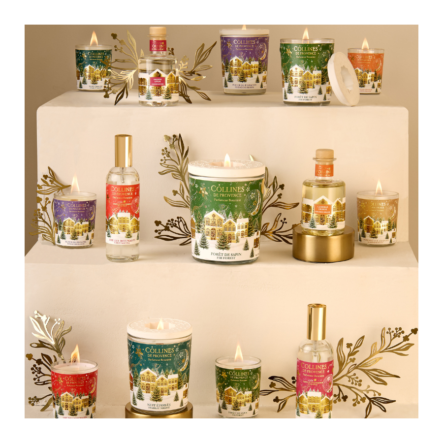 Adorned with a raspberry pink design dotted with sparkling gold accents, like a starry sky, the Amande Litchi home fragrance prolongs the magic of the festive season. With a single spray, it diffuses a refined fragrance where the tenderness of Provence almonds meets the bright, fruity sparkle of lychee. A festive and timeless scent to fill your home with elegance.