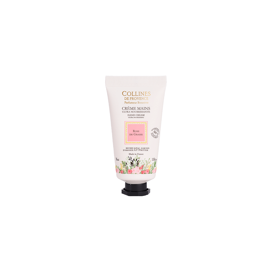 Enriched with almond butter from Provence (15%), Rose de Grasse Collines de Provence hand cream, with a smooth and melting texture, combines the softening, repairing and nourishing properties of sweet almond butter.