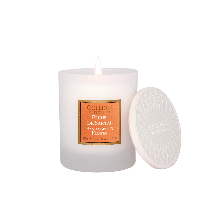 Discover our scented candle Sandalwood Flower with woody notes, handmade in our workshops in Haute-Provence