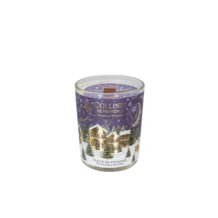 The Fleur de Pistache 75g scented candle captivates with its festive and refined design. Handcrafted in Haute Provence, it combines the magic of a crackling wooden wick with the luminous charm of its openwork label. Pistachio, the key note of this oriental and gourmand fragrance, fills the home with a soft and elegant atmosphere, perfect for brightening up the festive season.