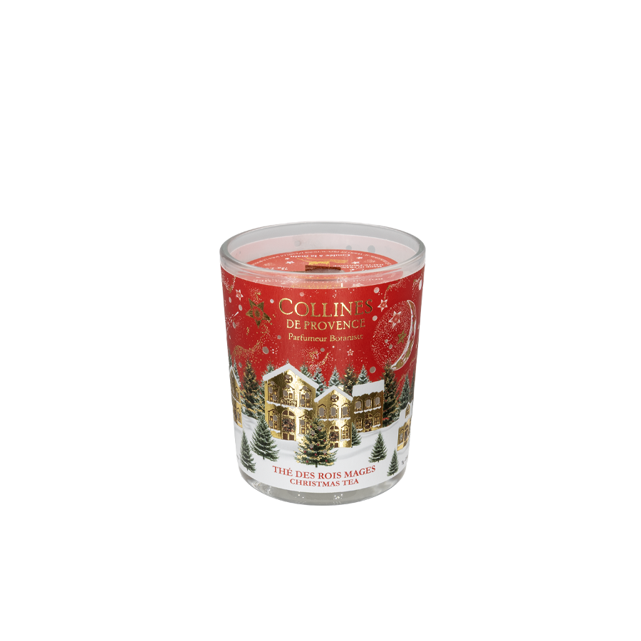 Immerse yourself in the authenticity of the festive season with the 75g Thé des Rois Mages scented candle, handmade in our workshop in Haute Provence. This fragrance from Grasse, with its deep and mystical notes, is enhanced by a crackling wooden wick, for a sparkling decoration inspired by Christmas villages.