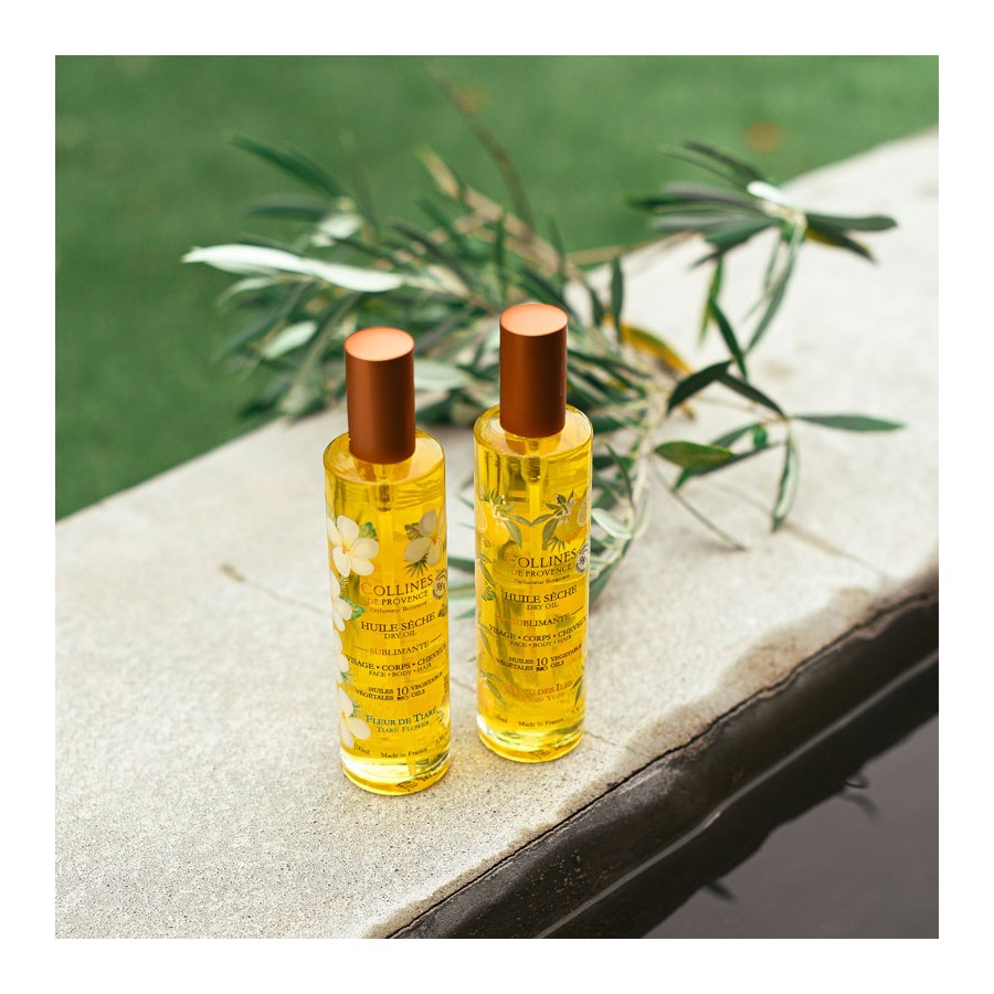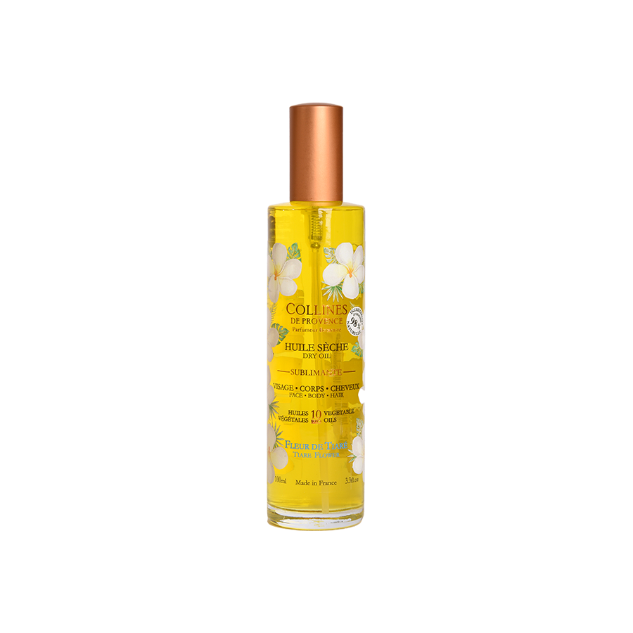 Discover the Tiare Flower Collines de Provence Dry Oil. This solar, suave and captivating scent invites you on a paradisiacal journey !