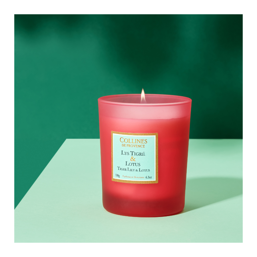 Discover our Lys Tigré & Lotus scented candle with floral and aquatic notes, handcrafted in our workshops in Haute-Provence.